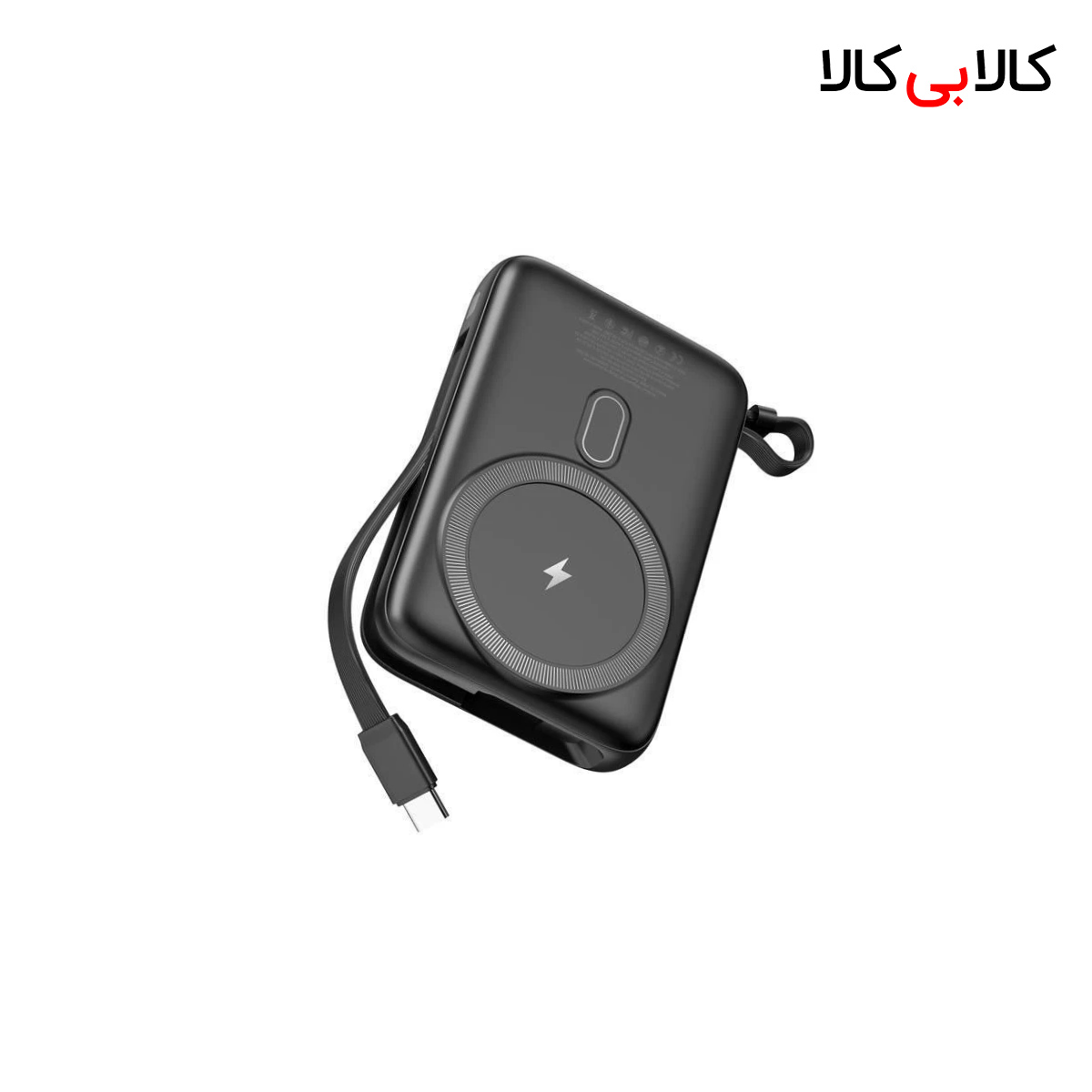 این مدل با آهنربای نئودیمیوم قدرتمند، به موبایلهای آیفون 12 به بالا متصل میشود و شارژ بیسیم تا توان 15 وات را ارائه میدهد. درگاه Type-C با ورودی 57/3.0A و خروجی USB-A با توان 22.5 وات، شارژی سریع و ایمن را فراهم میکند.