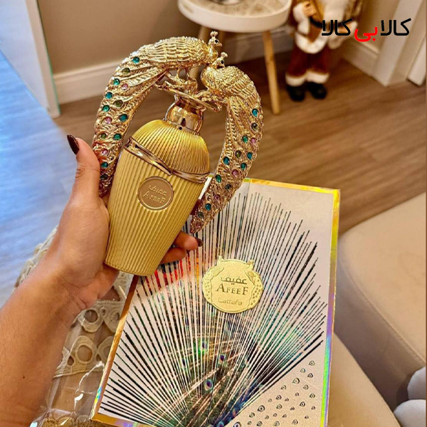جعبه نیز با طراحی الهامگرفته از پرهای طاووس و رنگآمیزی متالیک، تجربهی باز کردن عطر را به یک حس لوکس و منحصر بهفرد تبدیل میکند. این طراحی خاص نشان میدهد که “عفیف” فقط یک عطر نیست، بلکه یک بیان هنری از نجابت، لطافت و جلال شرقیست.