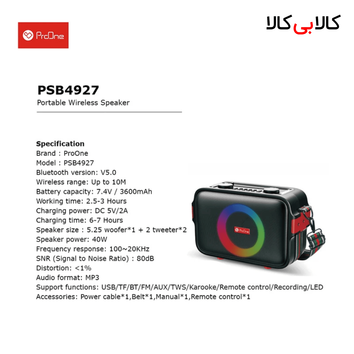 قصد خرید اسپیکر بلوتوثی قابل حمل پرووان مدل PSB4927 را دارید ؟ برند پرووان بهعنوان یکی از پیشروان تولید لوازم جانبی دیجیتال، با درک نیاز کاربران، اسپیکر بلوتوثی قابل حمل مدل PSB4927 را طراحی و روانه بازار کرده است. این اسپیکر با ابعاد 265×110×165 میلیمتر و وزن 2300 گرم، ضمن داشتن ساختاری مقاوم، طراحی زیبا و کاربرپسندی نیز دارد.