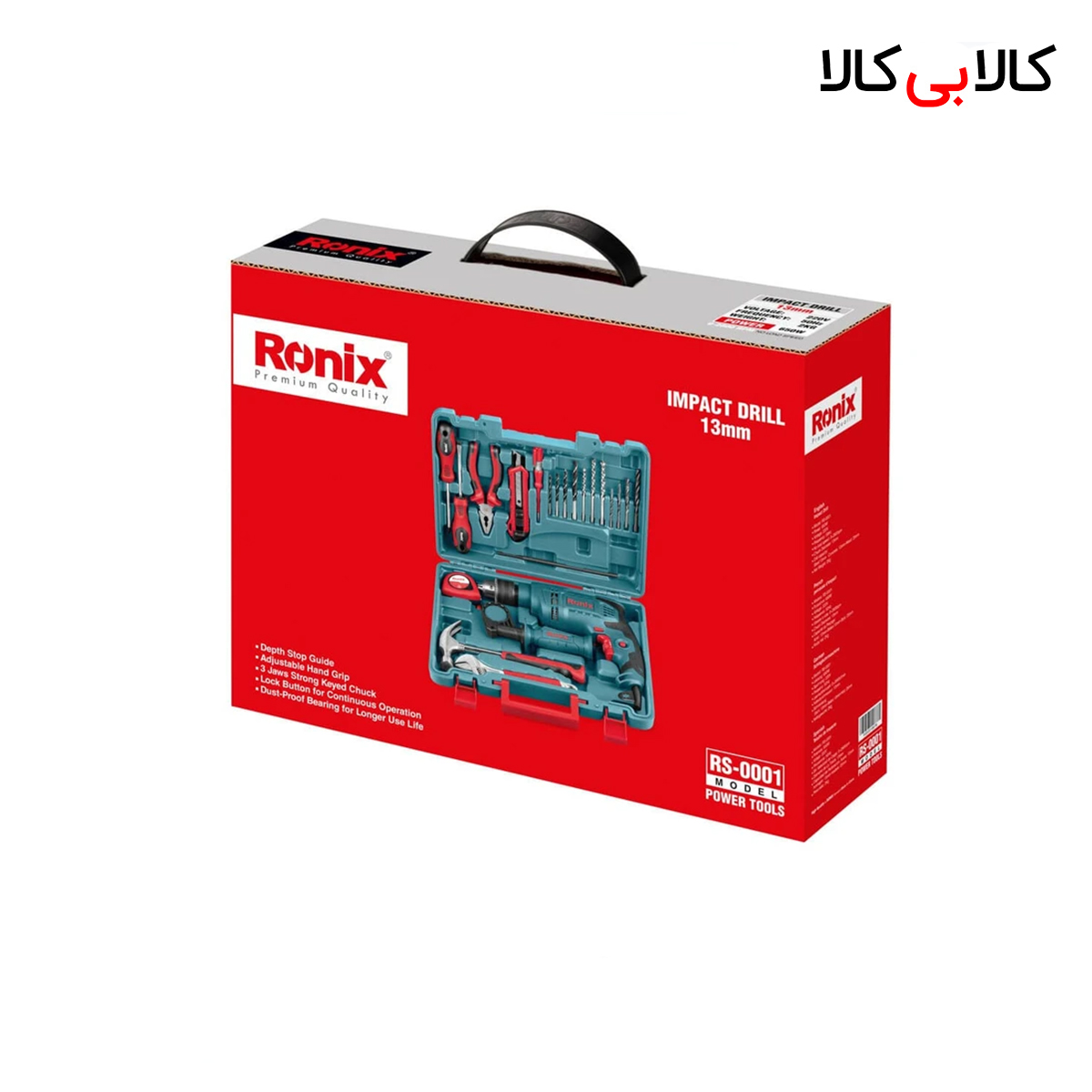 کیت کامل شامل انواع مختلف ابزارهای دستی به علاوه سری مته های رونیکس با سایز متفاوت ,مجهز به کیف ضد ضربه ,موتور 650 واتی بسیار مقاوم برای بهترین کارایی در دریل کاری و دریل چکشی ,سبک وزن و ارگونومیک مناسب برای تمامی کاربردها در متریال های متفاوت ,سه نظام ۱۳ میلیمتری آچاری تمام فلزی برای کارایی حداکثری ,نرخ ضربه بالا برای بهترین عملکرد در حالت دریل چکشی ,دسته جانبی ارگونومی 360 درجه که لرزش را به حداقل می رساند و اجازه کار بدون خستگی را برای کاربر فراهم میکند ,طراحی ارگونومی و جمع و جور که نهایت قدرت را در کمترین وزن فراهم میکند ,مجهز به سوییچ ضد غبار که نفوذ غبار را به حداقل می رساند ,دارای دیمر برای کنترل سرعت مناسب در کاربری ها و متریال های متفاوت ,دارای سوییچ چپ گرد و راستگرد |